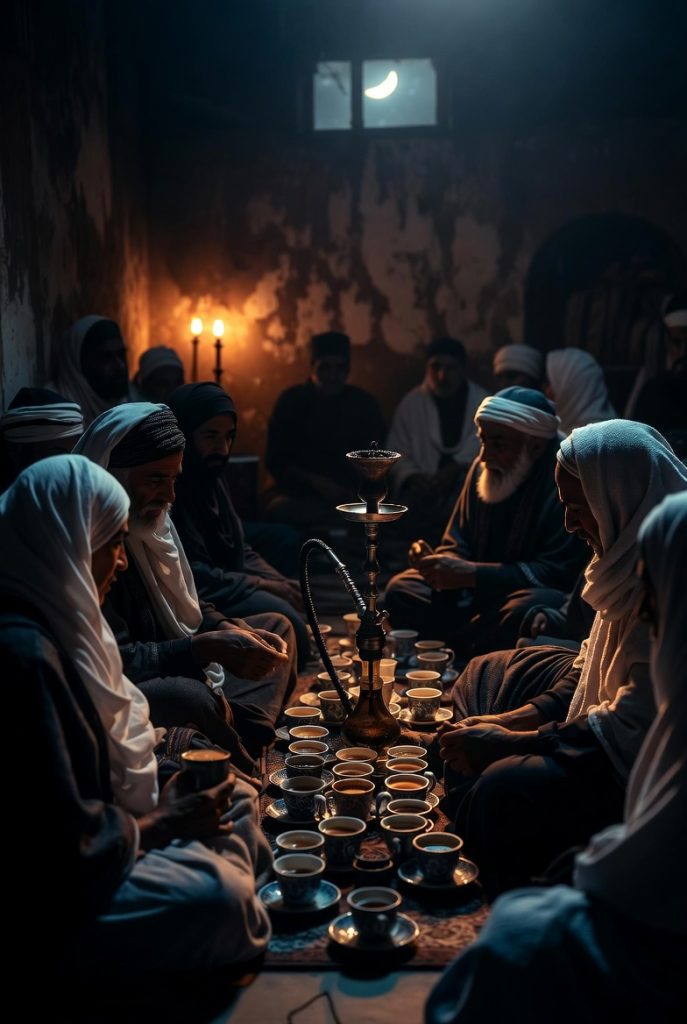 Para ulama dan penyair duduk bersila, menyesap cairan hitam pekat yang dianggap sebagai bahan bakar bagi ketajaman berpikir, menciptakan harmoni unik di mana spiritualitas dan rasionalitas bertemu dalam satu cangkir. Di sini, kopi bukan sekadar penahan kantuk, melainkan katalisator yang mengubah malam-malam suci menjadi festival gagasan yang mencerahkan jiwa.